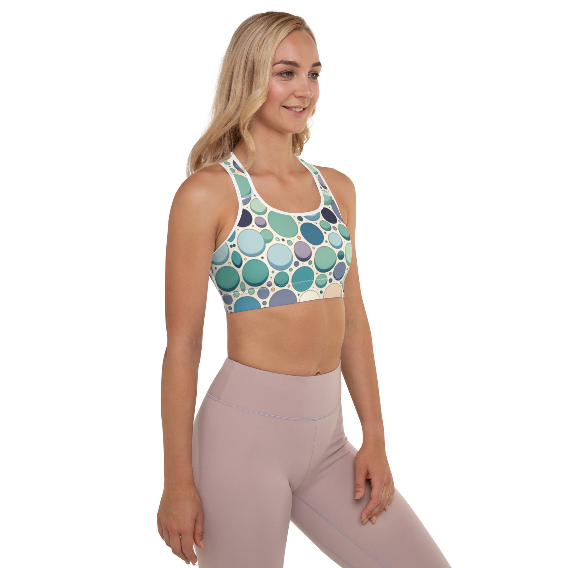Get the perfect bra for your workouts! This comfy bra has a soft moisture-wicking fabric, extra materials in shoulder straps, and removable padding for maximum support.