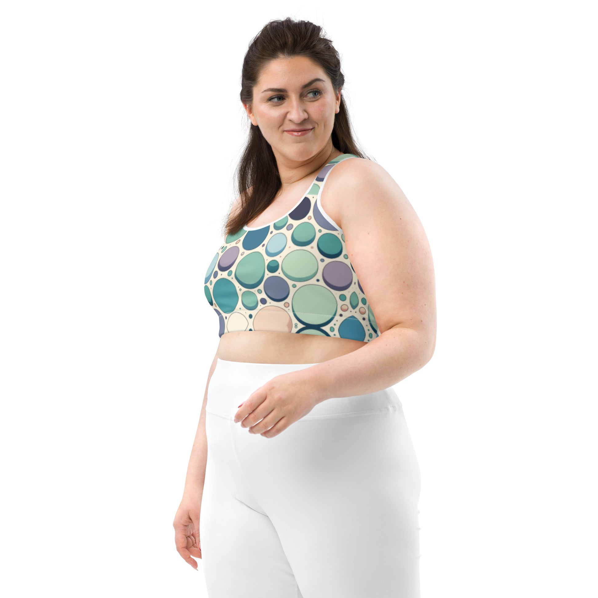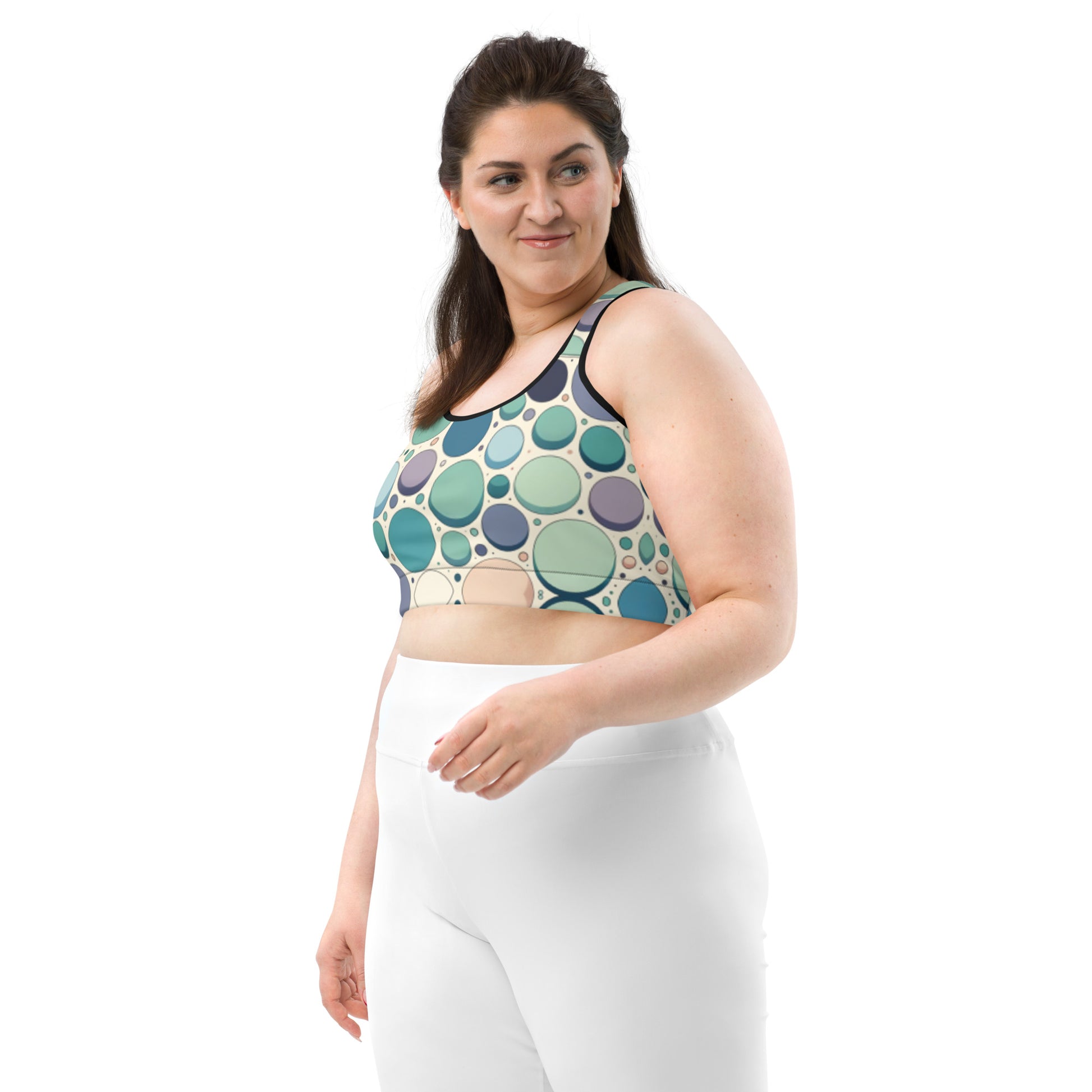 This gorgeous sports bra is made from moisture-wicking material that stays dry during low and medium intensity workouts. The bra has support material in the shoulder straps, double layer front, and a wide elastic band to ensure constant support.