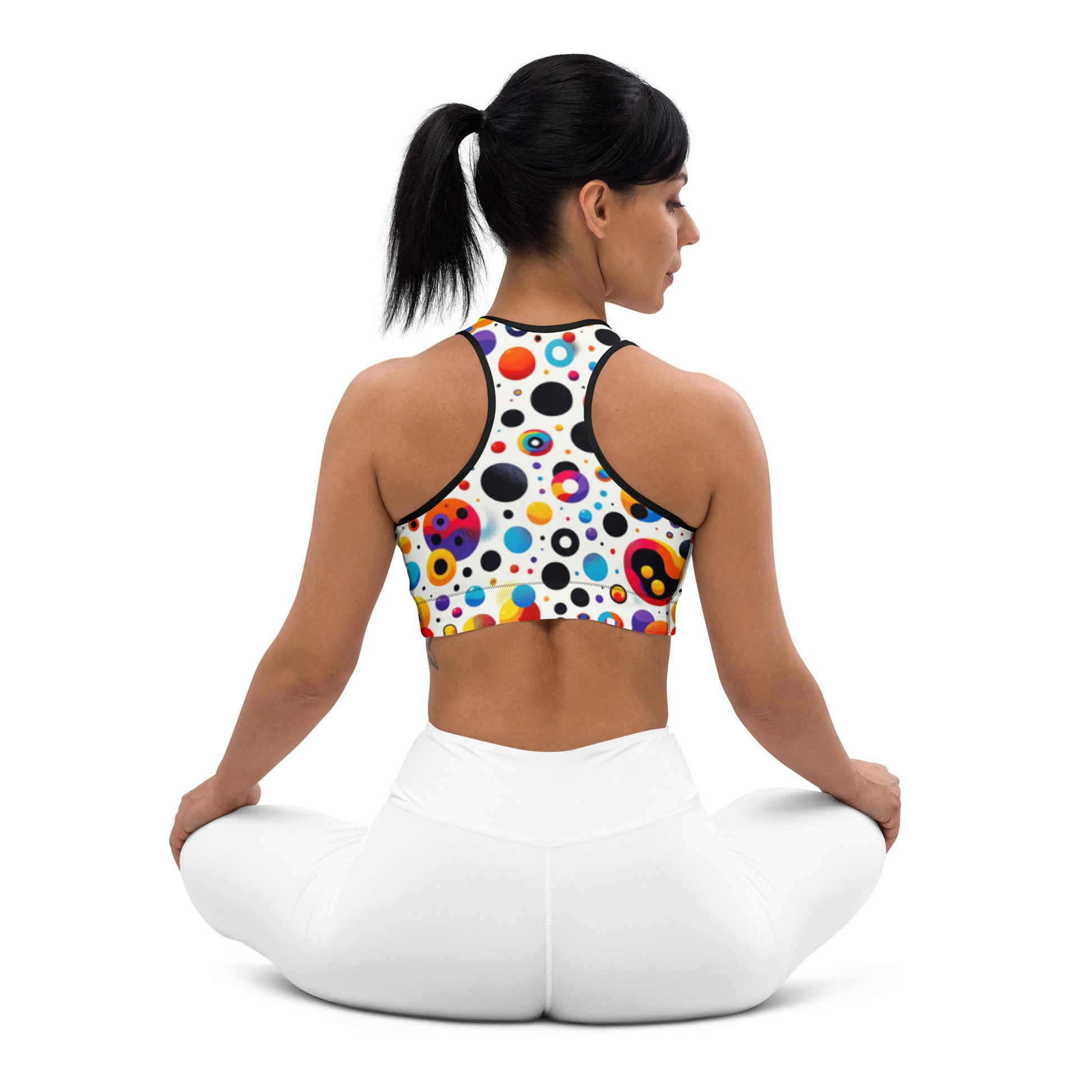 This gorgeous sports bra is made from moisture-wicking material that stays dry during low and medium intensity workouts. The bra has support material in the shoulder straps, double layer front, and a wide elastic band to ensure constant support.
