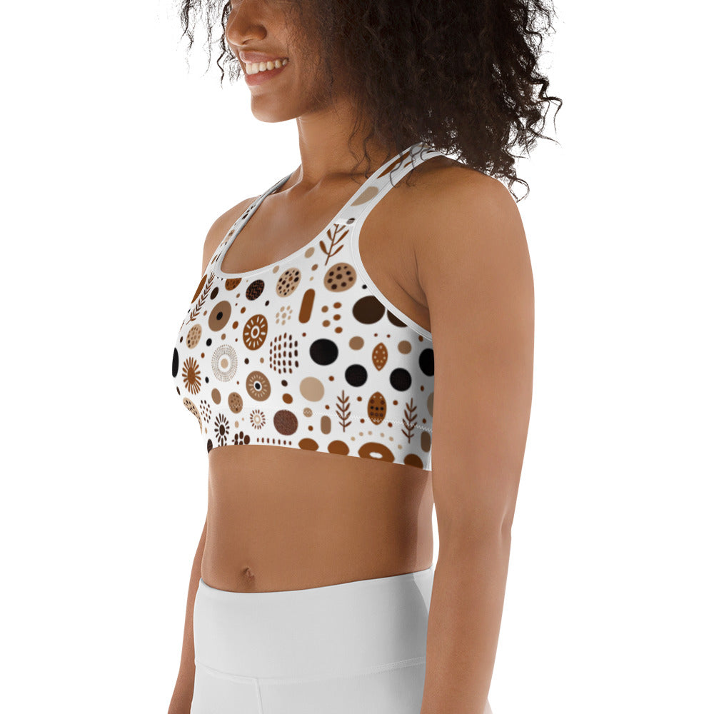 This gorgeous sports bra is made from moisture-wicking material that stays dry during low and medium intensity workouts. The bra has support material in the shoulder straps, double layer front, and a wide elastic band to ensure constant support.
