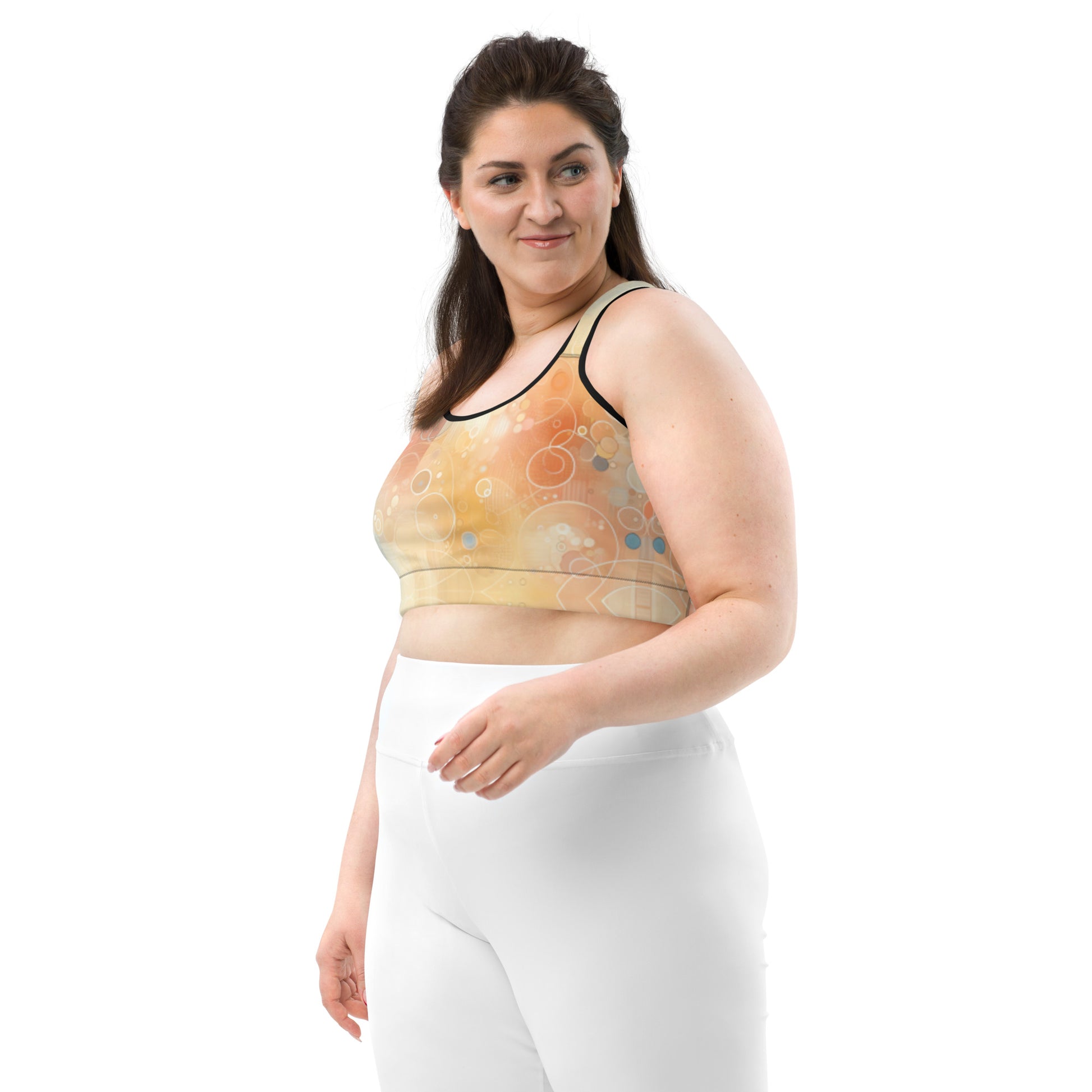 This gorgeous sports bra is made from moisture-wicking material that stays dry during low and medium intensity workouts. The bra has support material in the shoulder straps, double layer front, and a wide elastic band to ensure constant support.