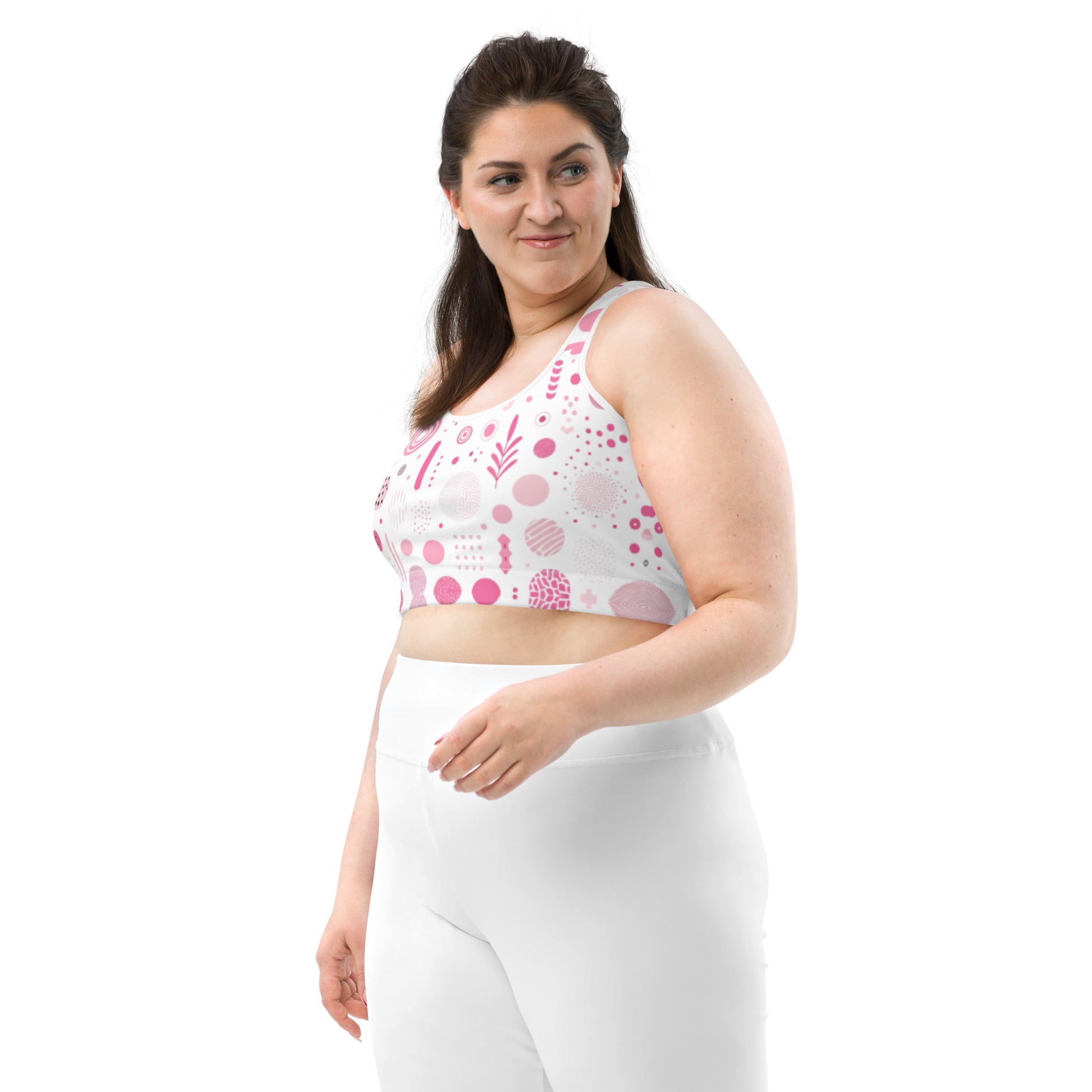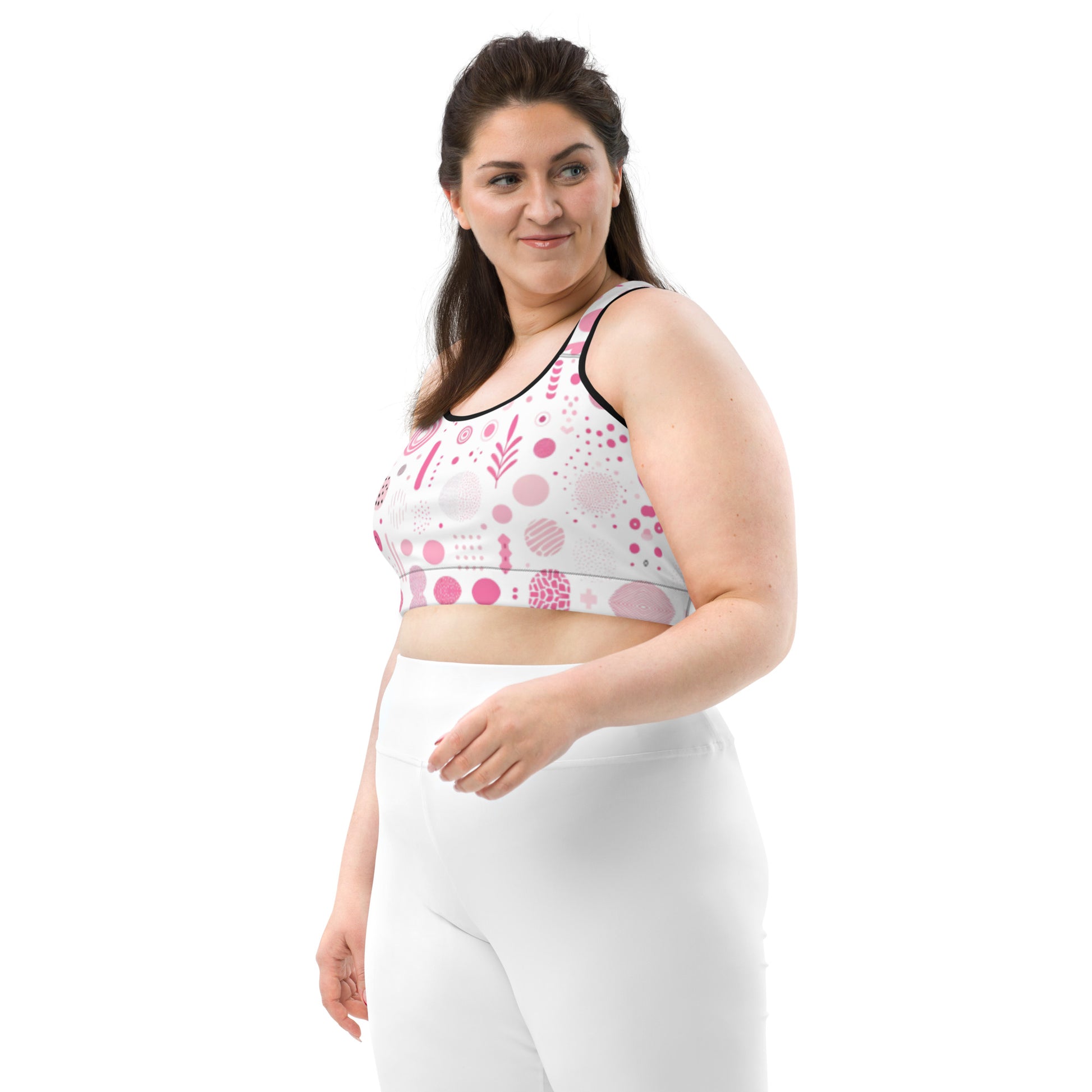 This gorgeous sports bra is made from moisture-wicking material that stays dry during low and medium intensity workouts. The bra has support material in the shoulder straps, double layer front, and a wide elastic band to ensure constant support.