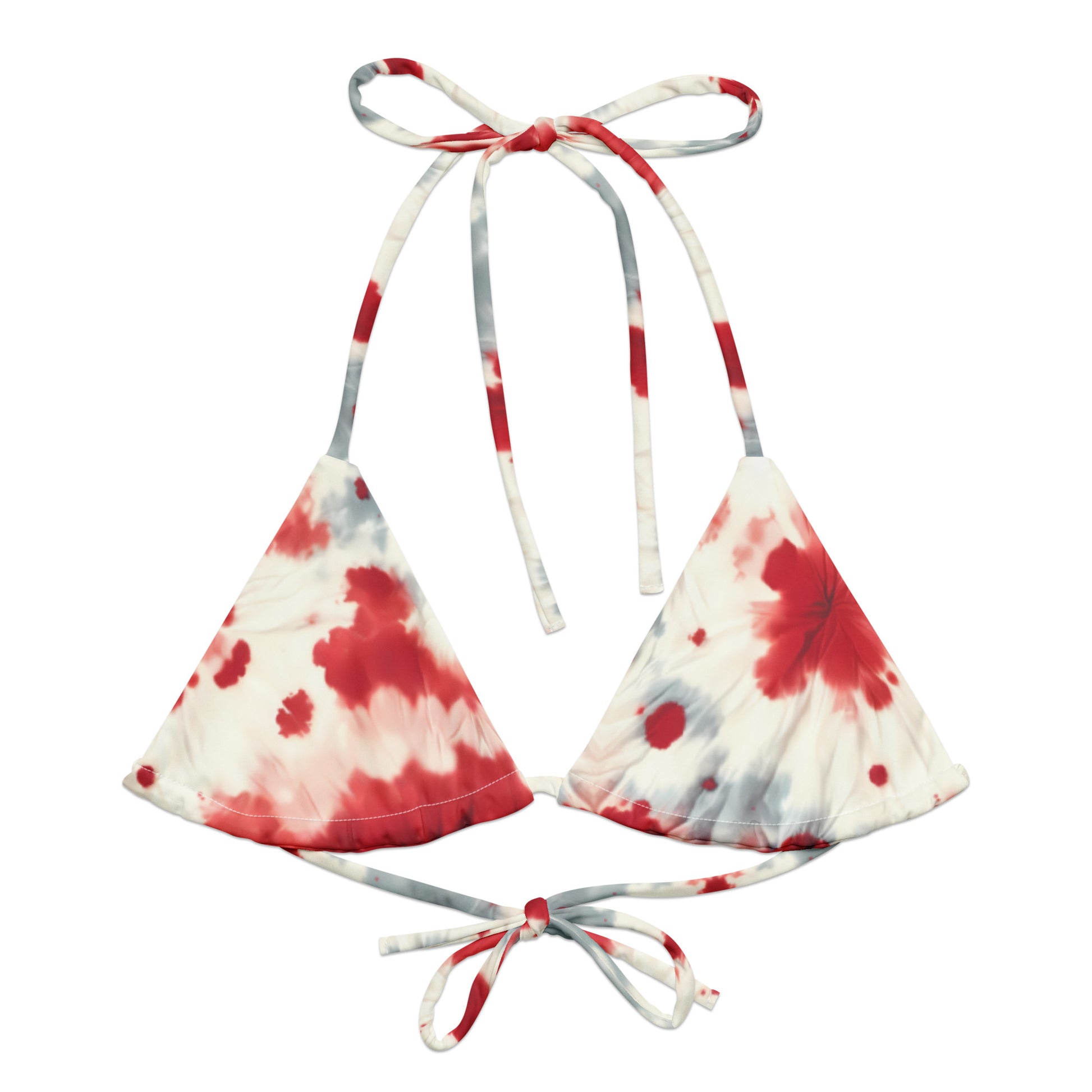 Disclaimer: To make your All-Over Print Recycled String Bikini Top last longer, thoroughly rinse it off after each use and get rid of any chlorine/salt residue.