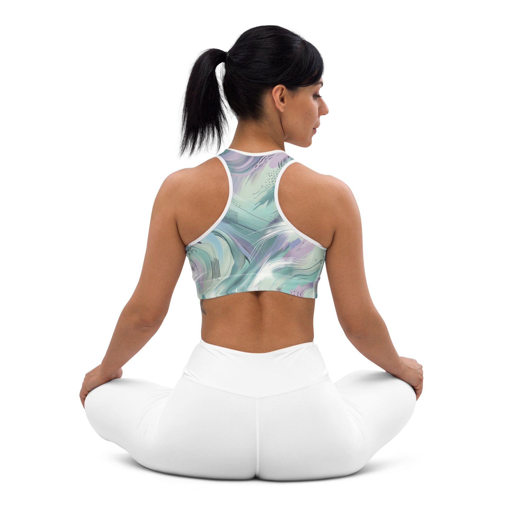 Get the perfect bra for your workouts! This comfy bra has a soft moisture-wicking fabric, extra materials in shoulder straps, and removable padding for maximum support.